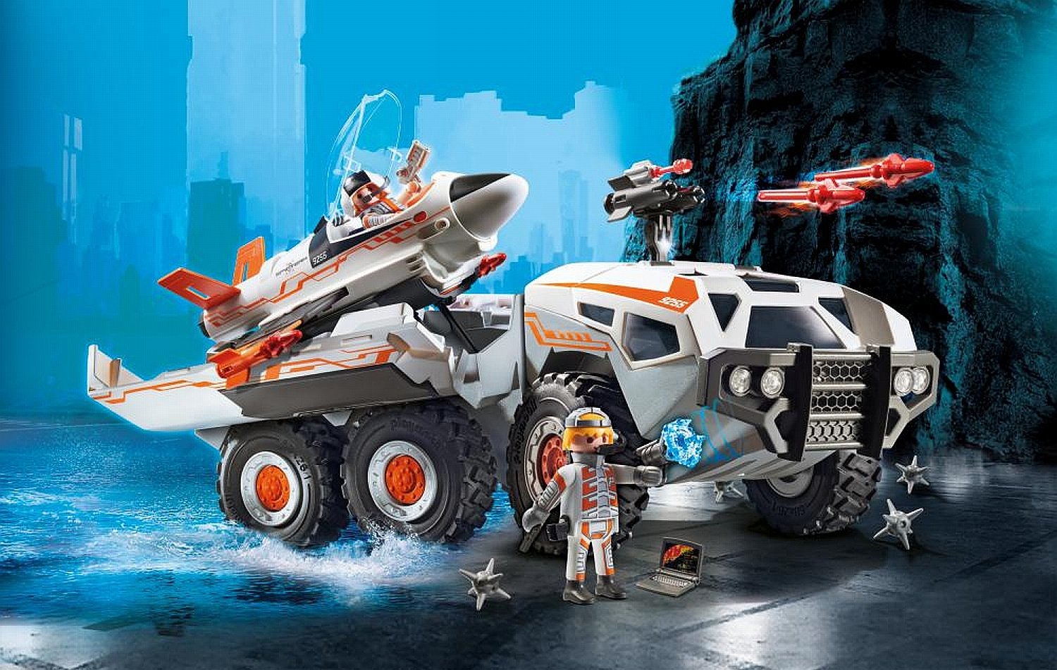 This remarkable battle truck is more than just a vehicle – it’s a fully equipped mission-ready machine! Featuring functioning projectiles and a launch pad for the included Agent General and Jet Girl figures, kids can embark on daring escapades while honing their fine motor skills. Rotate, maneuver, and even navigate through water with its robust propellers and adaptable design!
